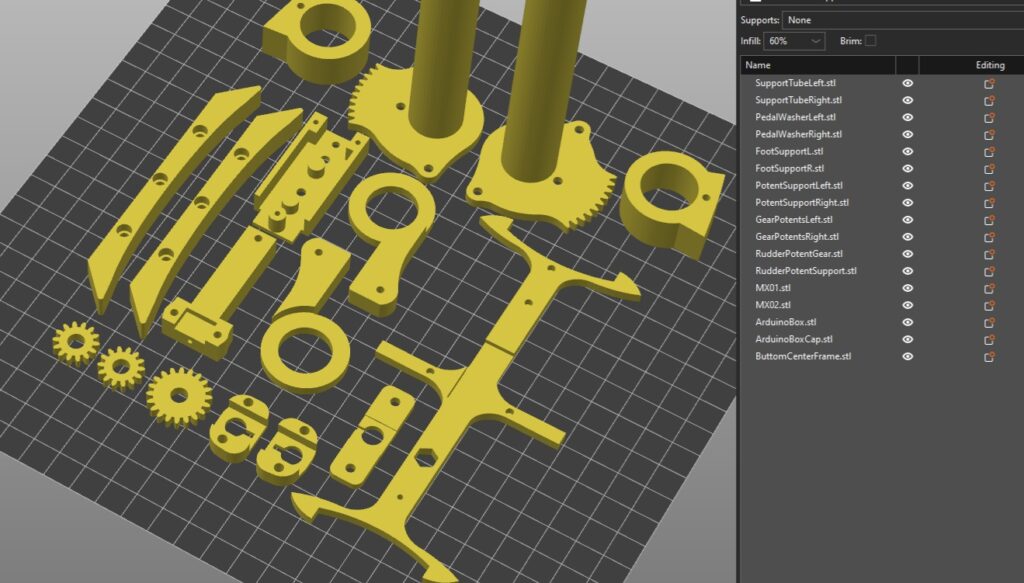 This project provides a complete mechanical design that can be easily printed and assembled, offering a cost-effective alternative to commercial rudder pedal systems while maintaining excellent performance and realism.